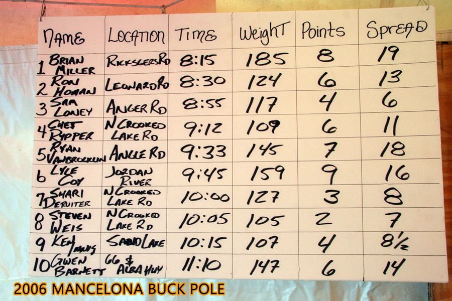 • Buck Pole Results & Photos Through the Years